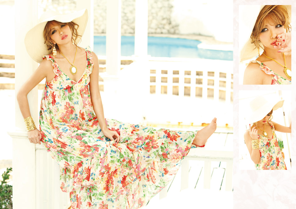 洋裝、帽子、耳環、手環、鞋